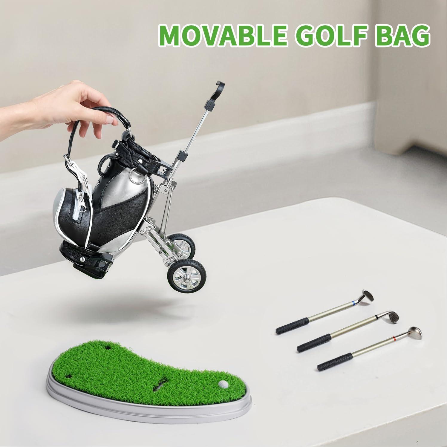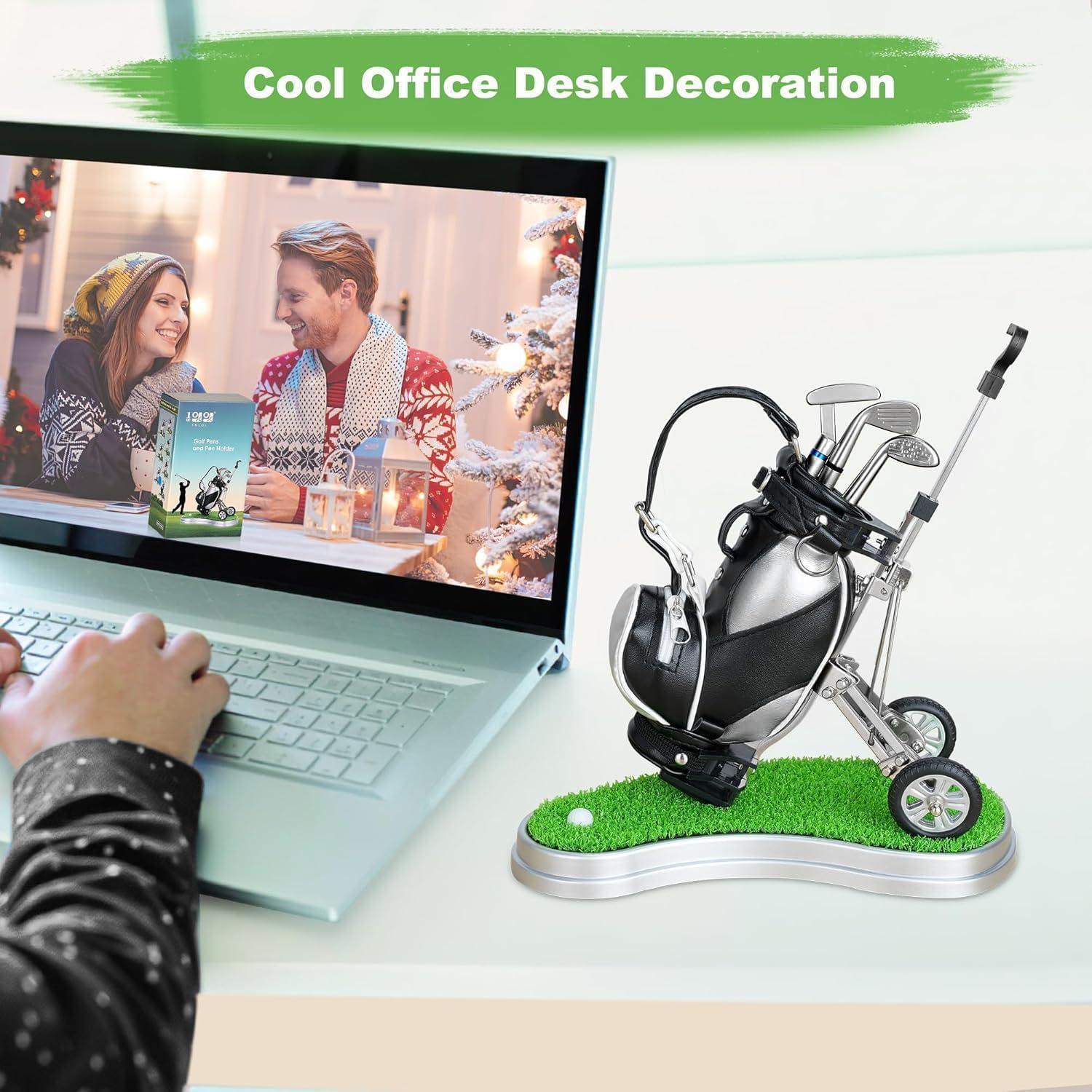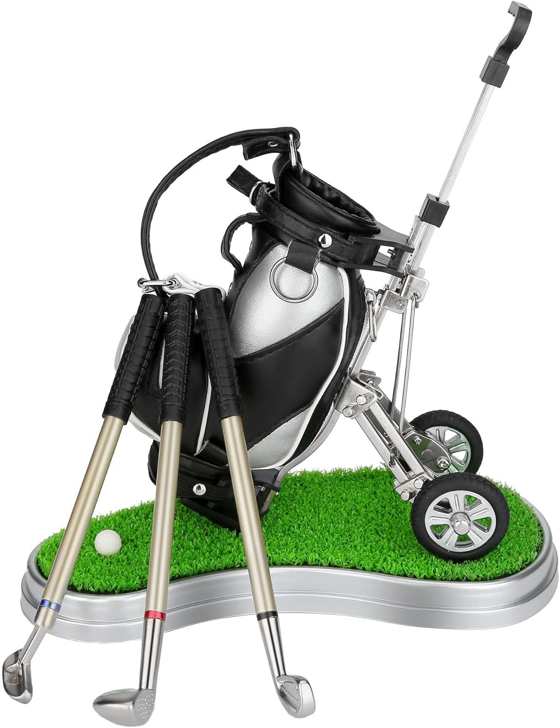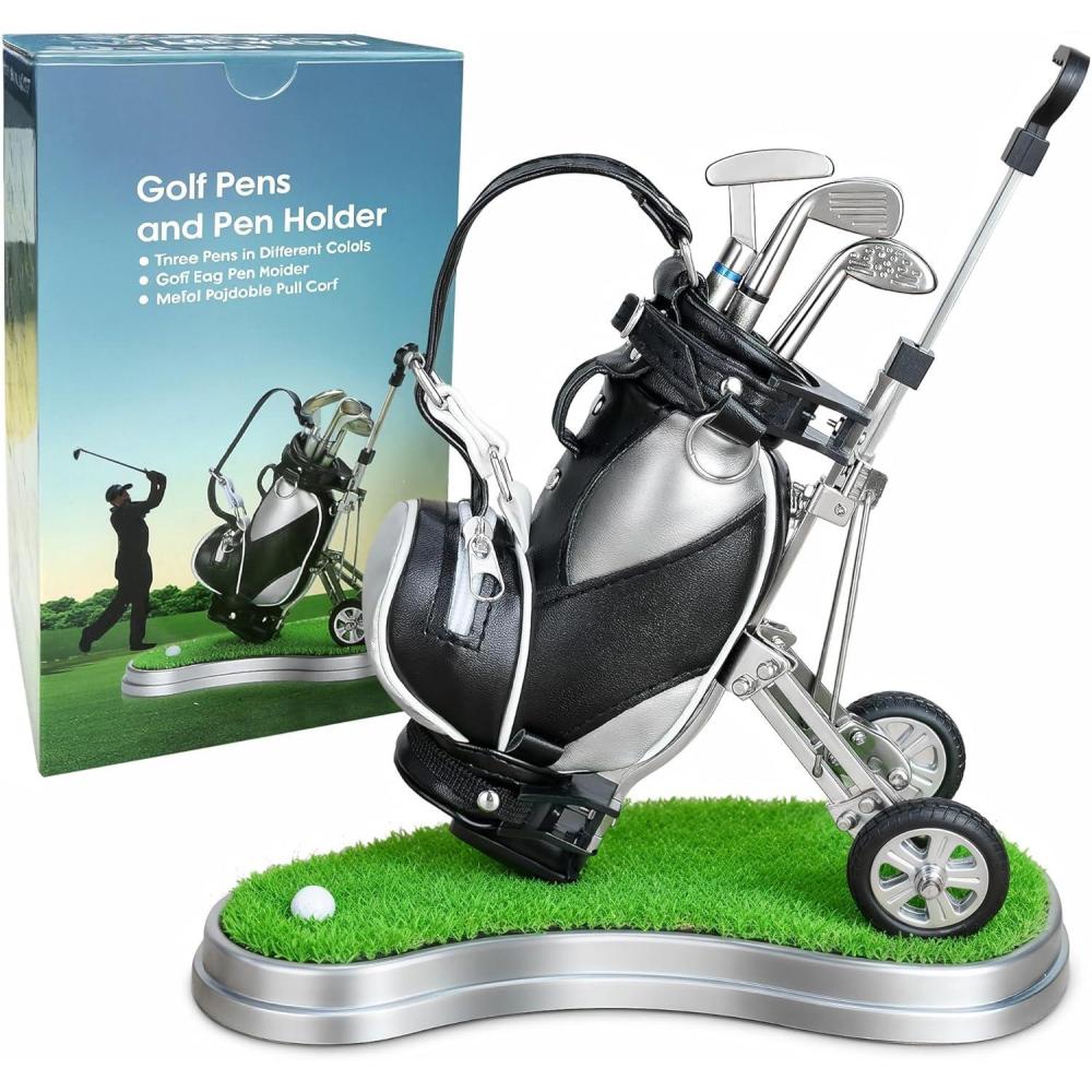 10L0L Gift for Men, Golf Pen Holder Desk Accessories for Golfers, 3 Club Pens Mini Gold Bag Office Decor, Funny Stocking Stuffers on Birthday, Christmas, Fathers Day (Golf Bag)(Golf Push Cart)