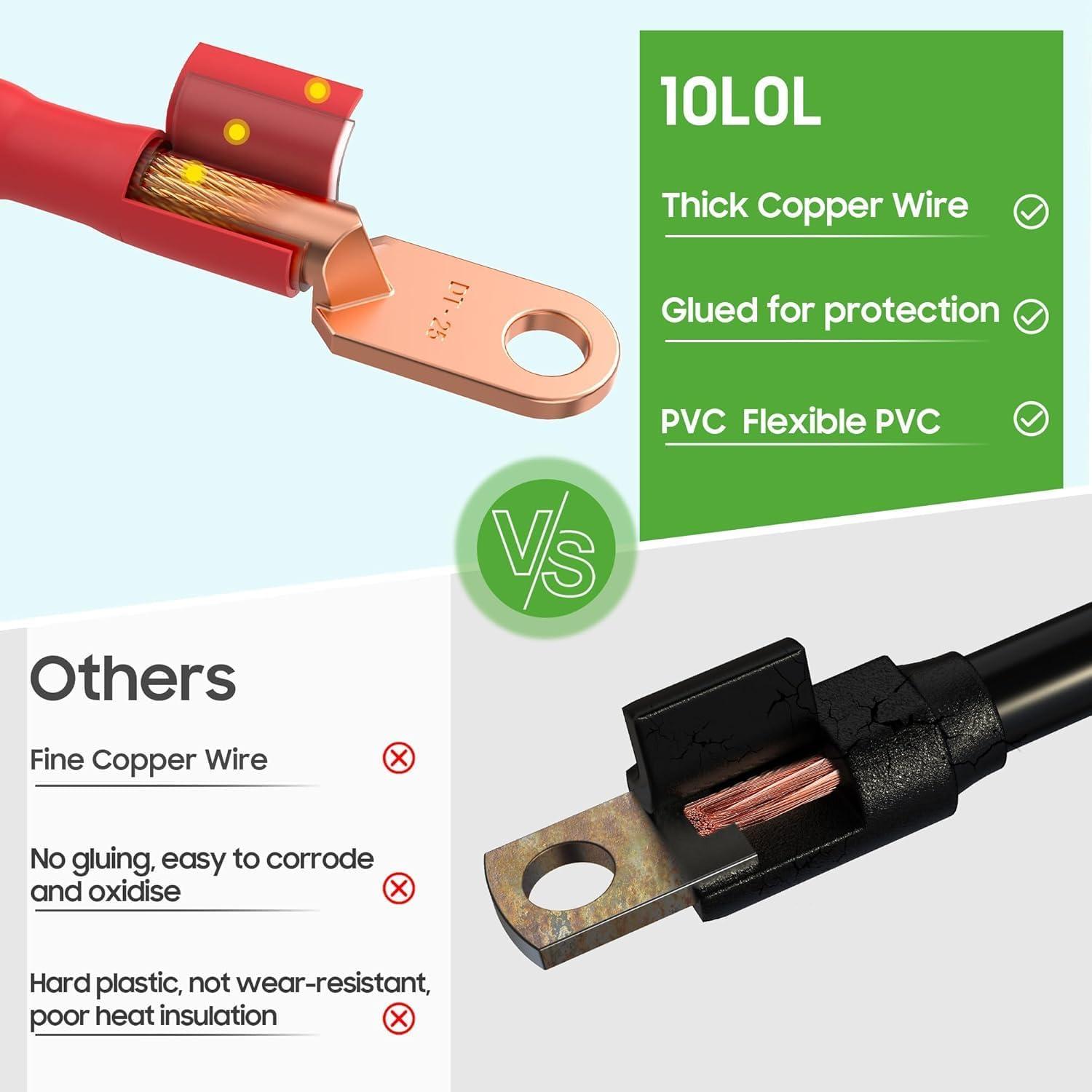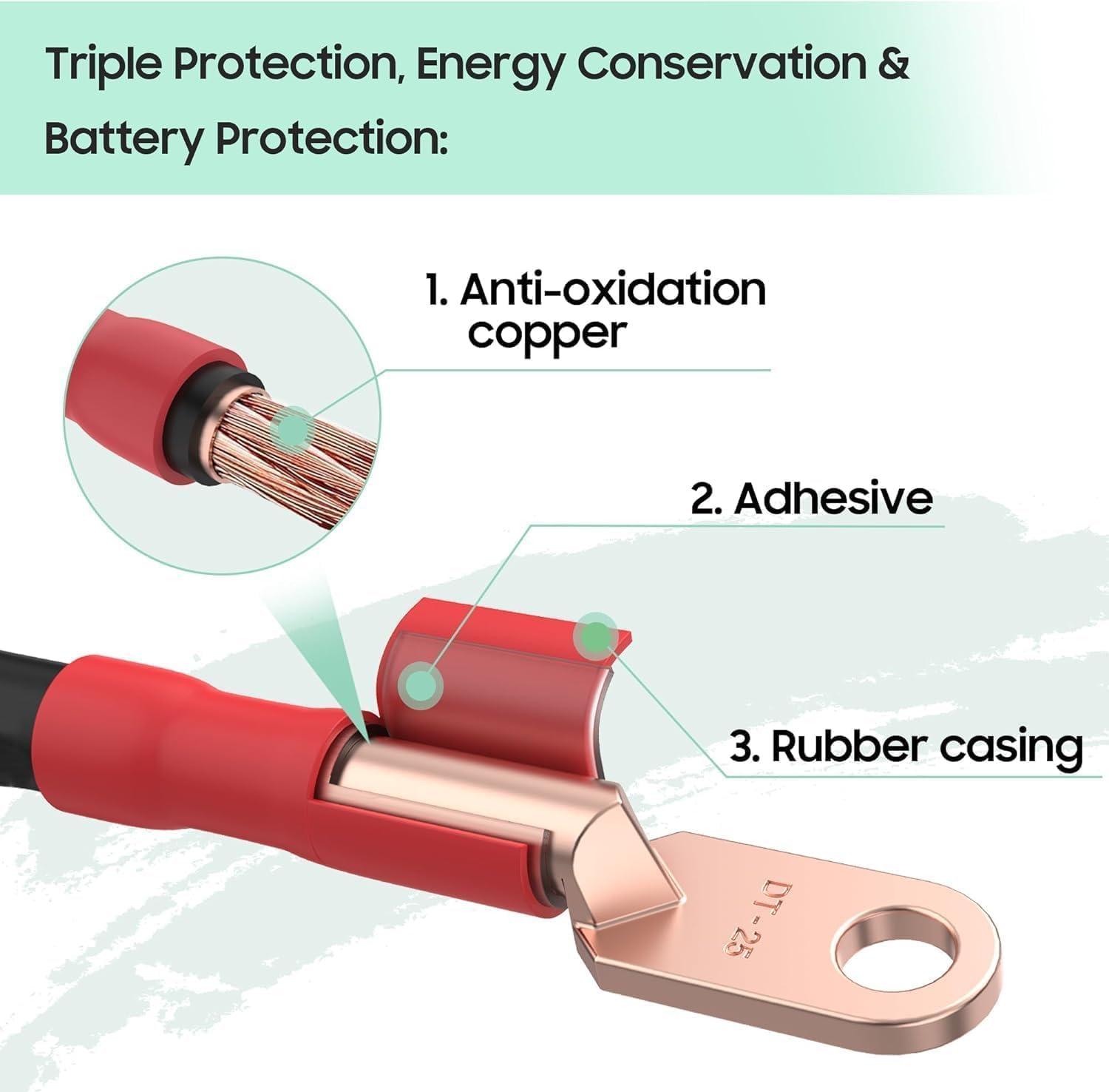 CORROSION-RESISTANT COPPER TERMINALS: Features hex-shaped pure copper lugs with heat shrink sealing for ultra-low resistance and maximum conductivity. Each terminal is tightly sealed to block moisture, acid, and corrosion—year after year.