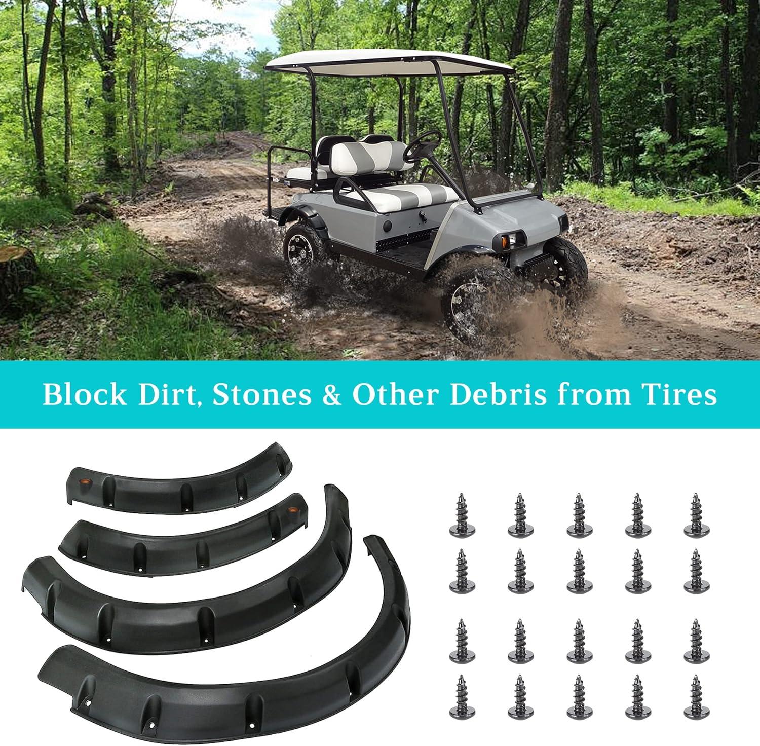 Fits well on front and rear wheels, protects passengers and the bare cart body from sand, mud and rocks. Moreover, the resilient material make the fenders act as a cushion to collision and friction