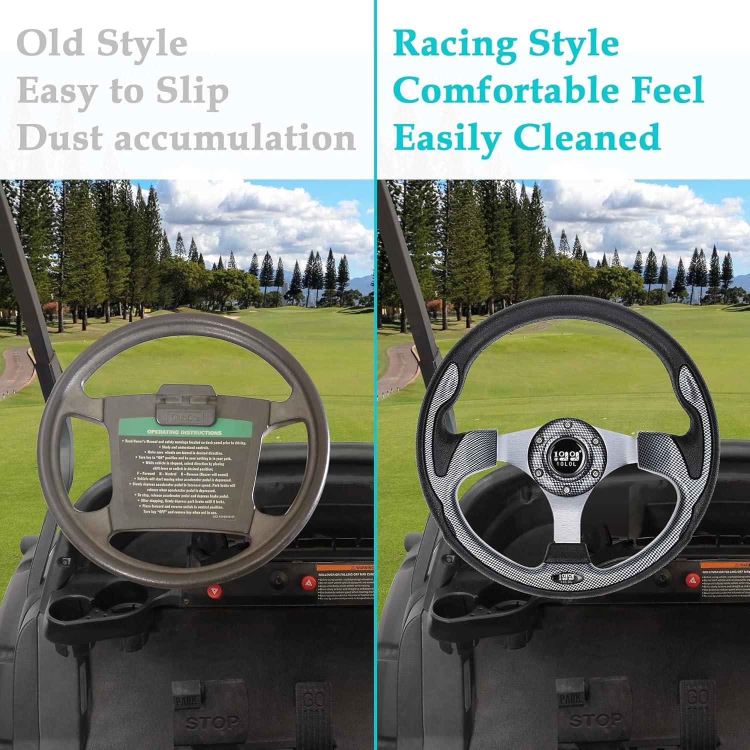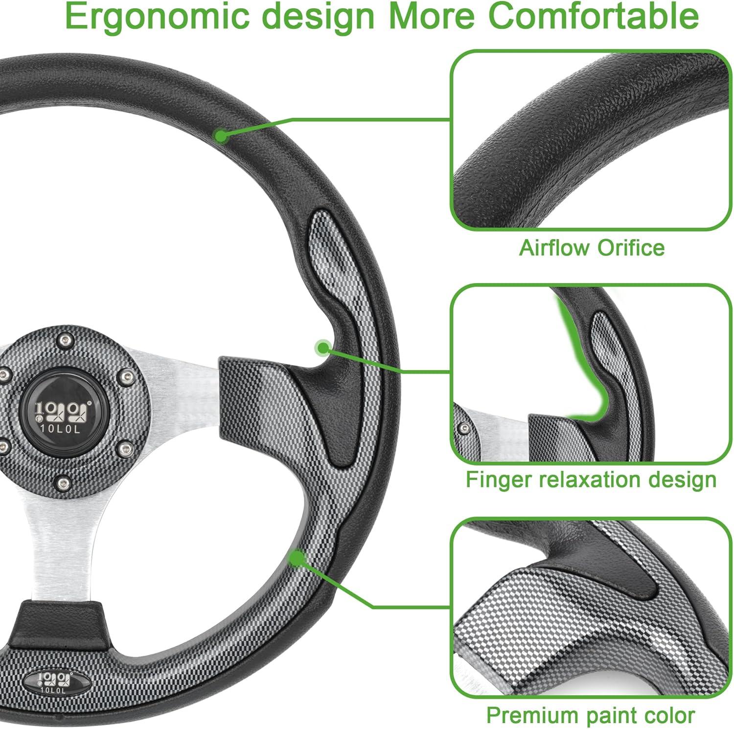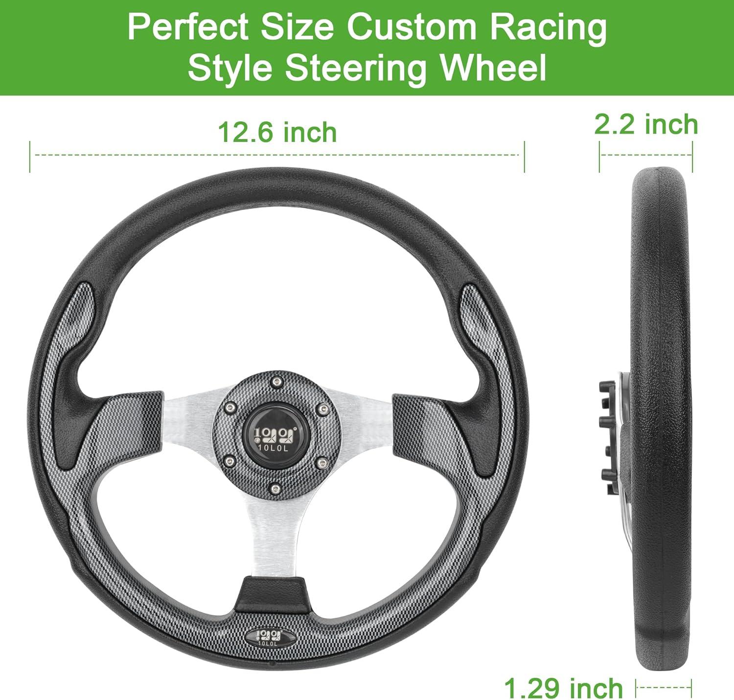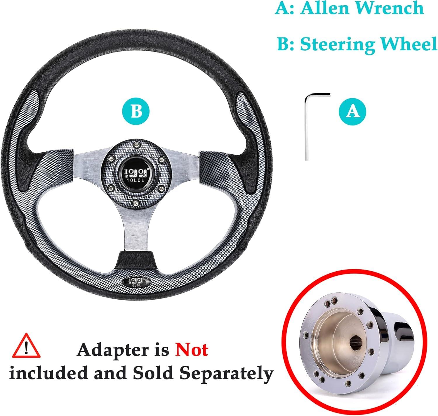 10L0L Universal Golf Cart Steering Wheel for EZGO TXT RXV, Club Car DS Precedent, Yamaha – 12.5 inch – Adapter Optional